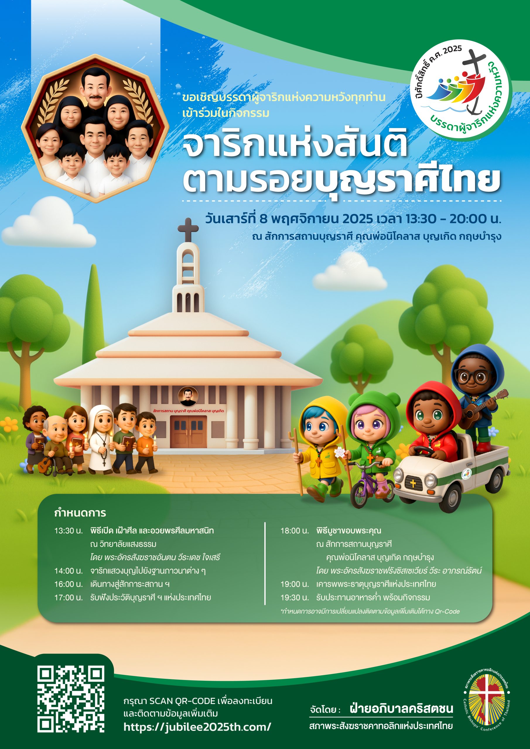 สังฆมณฑลเชียงใหม่ขอเชิญน้อง ๆ เยาวชนทุกคนเข้าร่วม งานชุมนุมเยาวชนสังฆมณฑลเชียงใหม่ พร้อมกิจกรรมพิเศษเนื่องในโอกาส ปิดปีศักดิ์สิทธิ์ ค.ศ. 2025 ภายใต้หัวข้อ “บรรดาผู้จาริกแห่งความหวัง” ซึ่งพระศาสนจักรสากลประกาศให้เป็นปีแห่งความหวัง เพื่อฟื้นฟูชีวิตฝ่ายจิตและเสริมสร้างความมั่นคงในความเชื่อของเยาวชนคริสตชน งานชุมนุมครั้งนี้จะจัดขึ้นในวันที่ 26–27 ธันวาคม ค.ศ. 2025 ณ โรงเรียนมงฟอร์ตวิทยาลัย แผนกประถม จังหวัดเชียงใหม่ โดยมุ่งเน้นให้เยาวชนได้มีโอกาสพบปะ แลกเปลี่ยนประสบการณ์ และร่วมกิจกรรมฝ่ายจิตที่หลากหลาย อาทิ การภาวนา การแบ่งปันพระวาจา และกิจกรรมสร้างสรรค์ที่ช่วยเสริมสร้างความหวังและความรักในพระคริสตเจ้า กิจกรรมทั้งหมดจัดขึ้นภายใต้พระวาจา “ความหวังนี้ไม่ทำให้เราผิดหวัง” (โรม 5:5) เพื่อย้ำเตือนเยาวชนว่าความหวังในพระเจ้าจะเป็นพลังนำทางชีวิต และเป็นแรงบันดาลใจให้ดำเนินชีวิตคริสตชนอย่างมั่นคงในโลกยุคปัจจุบัน พี่น้องเยาวชนที่สนใจสามารถติดต่อสอบถามรายละเอียดเพิ่มเติมได้ที่ คุณพ่อเจ้าวัด หรือ คุณพ่อจิตตาภิบาลแต่ละเขต เพื่อร่วมเป็นส่วนหนึ่งของการเฉลิมฉลองปีศักดิ์สิทธิ์ และสร้างความทรงจำแห่งความเชื่อ ความรัก และความหวังร่วมกันในชุมชนคริสตชนของสังฆมณฑลเชียงใหม่ แแหล่งที่มา : https://www.facebook.com/share/p/1HEqZTG1Ar/