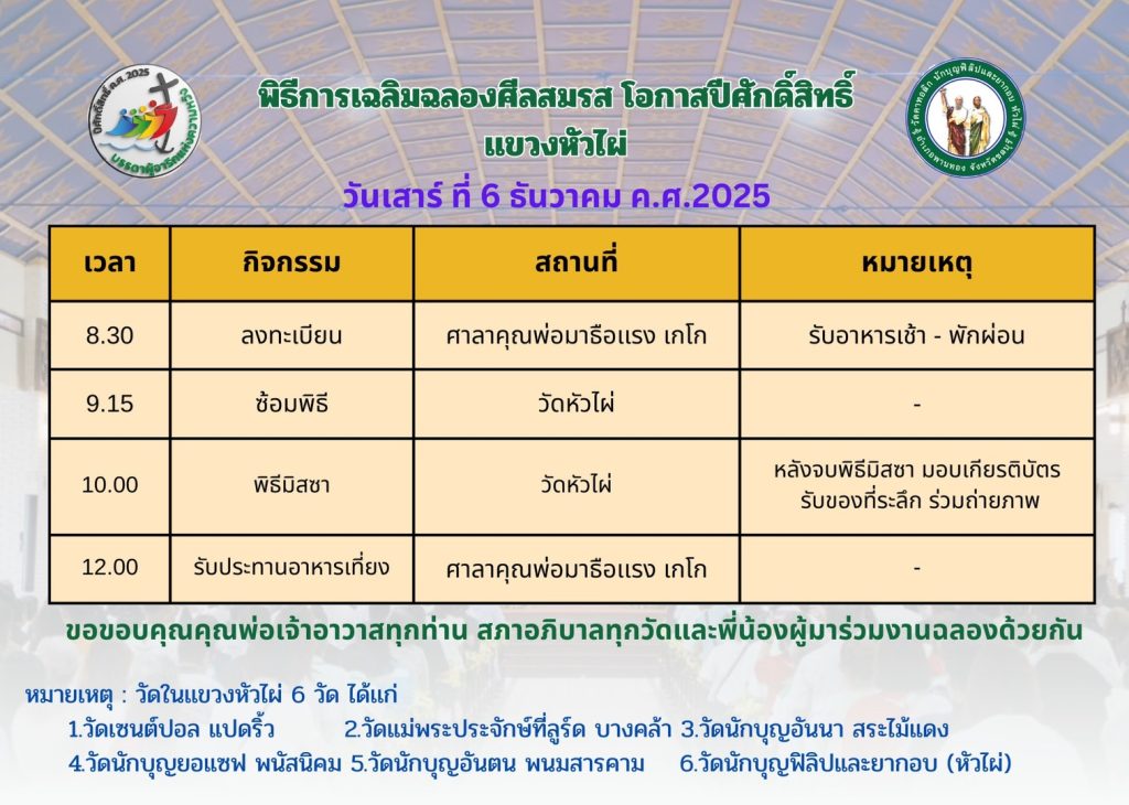 ขอเชิญร่วมพิธีเฉลิมฉลองศีลสมรส โอกาสปีศักดิ์สิทธิ์ ประจำแขวงหัวไผ่