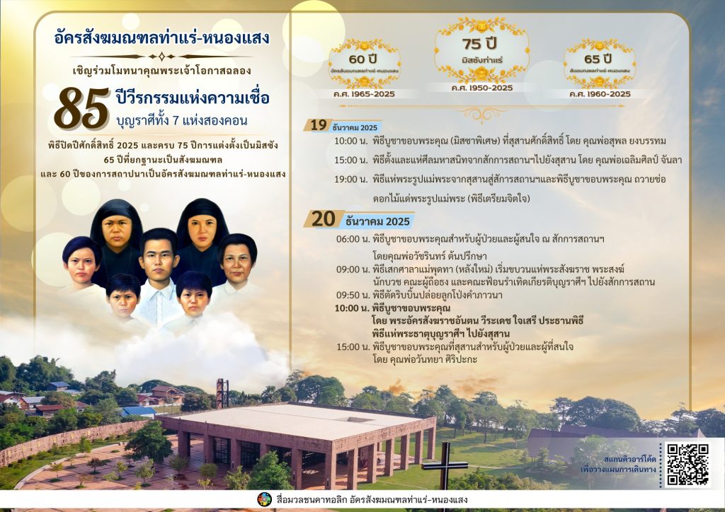 อัครสังฆมณฑลท่าแร่–หนองแสง เชิญร่วมฉลอง 85 ปี วีรกรรมแห่งความเชื่อบุญราศีทั้ง 7 แห่งสองคอน และพิธีปิดปีศักดิ์สิทธิ์ ค.ศ. 2025