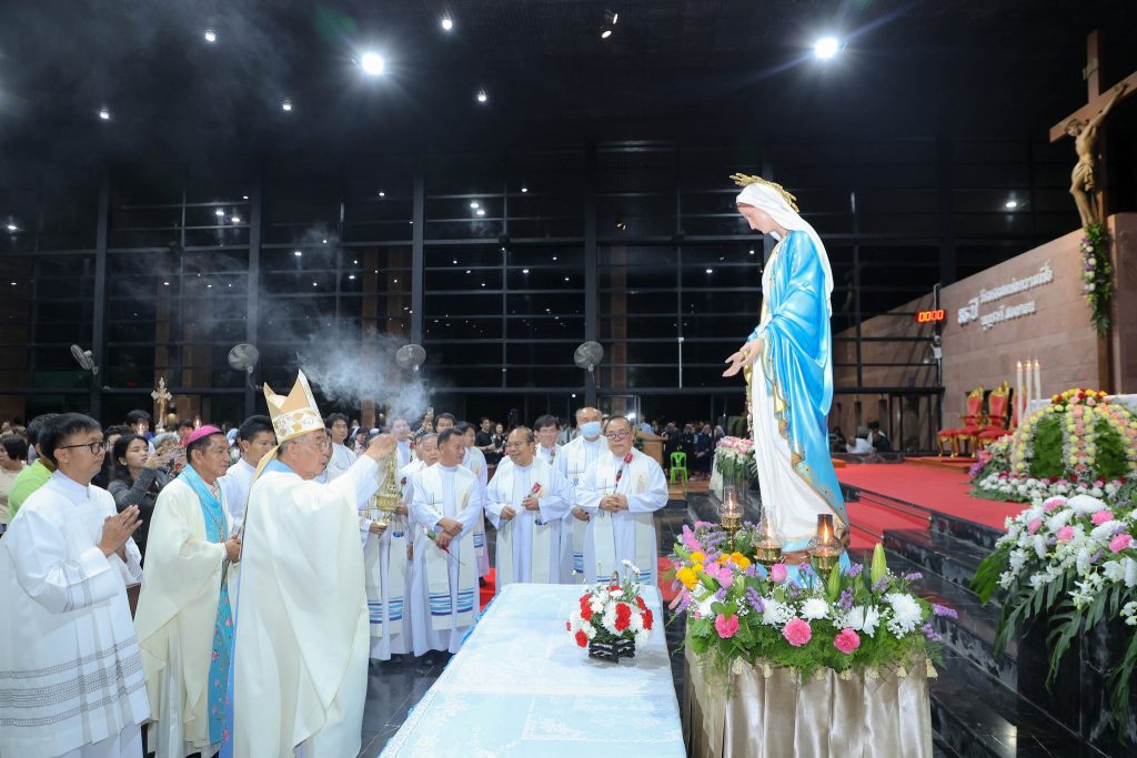 กำหนดการในวันดังกล่าวเริ่มตั้งแต่เวลา 10.00 น. ด้วยพิธีบูชาขอบพระคุณ (มิสซาพิเศษ) ณ สุสานศักดิ์สิทธิ์ โดยคุณพ่อสุพล ยงบรรทม ต่อมาเวลา 15.00 น. มีพิธีตั้งและแห่ศีลมหาสนิทจากสักการสถานฯ ไปยังสุสาน โดยคุณพ่อเฉลิมศิลป์ จันลา และเวลา 19.00 น. มีพิธีแห่พระรูปแม่พระจากสุสานสู่สักการสถานฯ พร้อมพิธีบูชาขอบพระคุณและถวายช่อดอกไม้แด่พระรูปแม่พระ เพื่อเตรียมจิตใจเข้าสู่การฉลองใหญ่