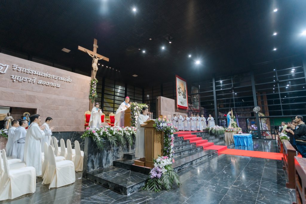 ก่อนเริ่มพิธี ได้มีการรำเทิดเกียรติบุญราศีทั้ง 8 องค์แห่งประเทศไทย โดยคุณครูทองบาง จันทรักษ์ และนางรำจากวัดต่าง ๆ รวม 385 คน ภายใต้การประสานงานของอาจารย์ดาวิทย์ พุทธิไสย พร้อมพิธีเปิดแพรป้ายและปล่อยลูกโป่งคำภาวนาสู่ท้องฟ้า จากนั้นมีการอ่านประกาศปิดปีศักดิ์สิทธิ์โดยคุณพ่อยอห์น อดิพงษ์ แสนสุริวงศ์ เลขาธิการอัครสังฆมณฑลท่าแร่–หนองแสง หลังพิธีบูชาขอบพระคุณ มีการแห่พระธาตุบุญราศีไปยังสุสานและอวยพรด้วยพระธาตุบุญราศี