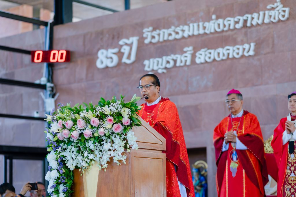 พระอัครสังฆราชอันตน วีระเดช ใจเสรี ได้เทศน์เตือนใจว่า การฉลอง 85 ปีวีรกรรมแห่งความเชื่อเป็นการปลุกเร้าความเชื่อให้เข้มแข็ง กระตุ้นให้คริสตชนร้อนรนยิ่งขึ้นในความรักของพระเจ้า และเลียนแบบชีวิตของบรรดามรณสักขี ส่วนการปิดปีศักดิ์สิทธิ์ “การจาริกแห่งความหวัง” ต้องเติมเต็มชีวิตให้มีความหวังและพร้อมช่วยเหลือผู้อื่น โดยเฉพาะคนยากจนและชายขอบของสังคม ขณะที่การฉลอง 75 ปีมิสซัง, 65 ปีสังฆมณฑล และ 60 ปีอัครสังฆมณฑล ต้องช่วยให้คริสตชนเป็นศิษย์พระคริสต์ที่เจริญชีวิตประกาศข่าวดีใหม่เยี่ยงบรรดาธรรมทูต และสืบสานมรดกแห่งความเชื่อต่อไป