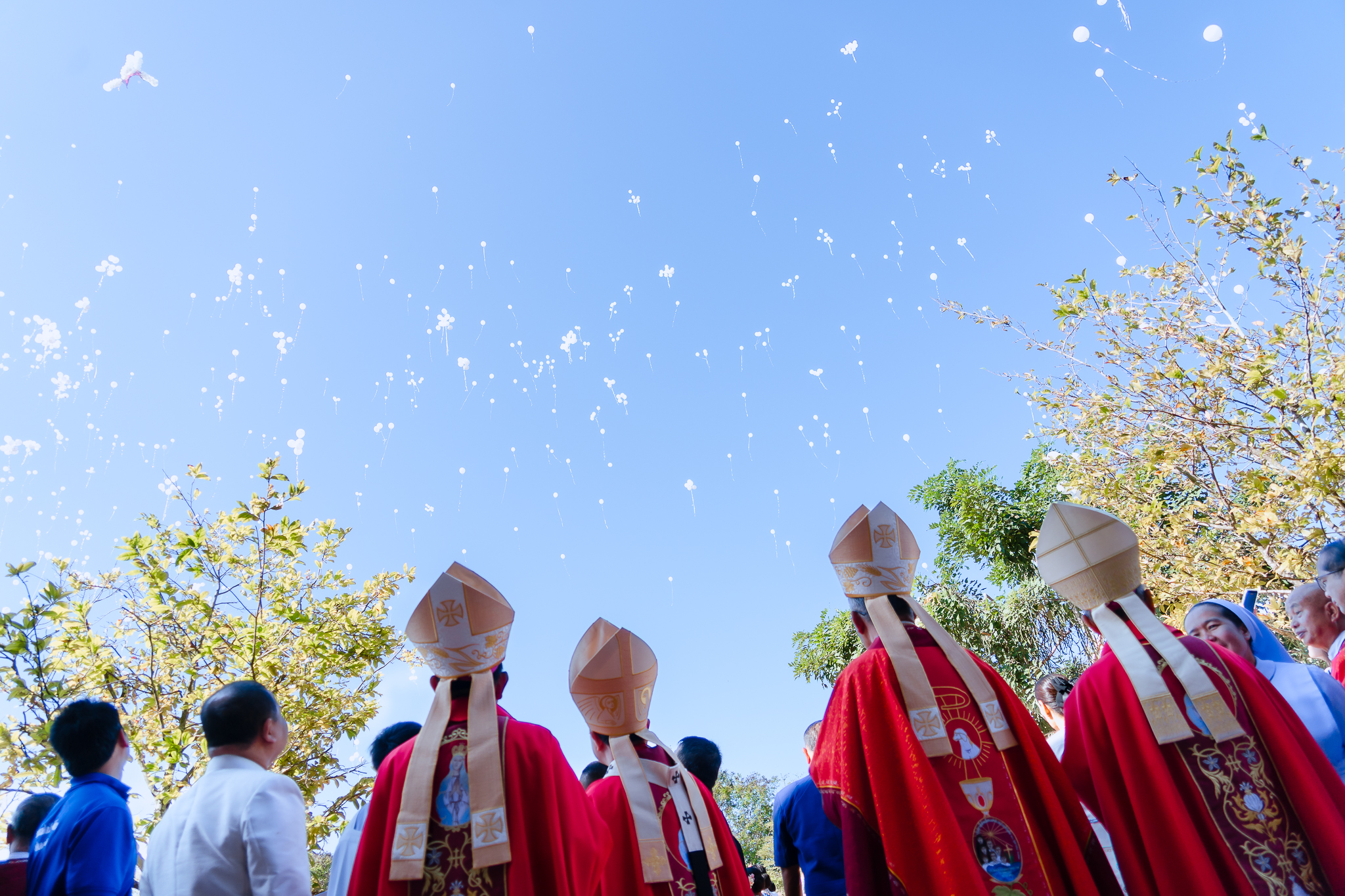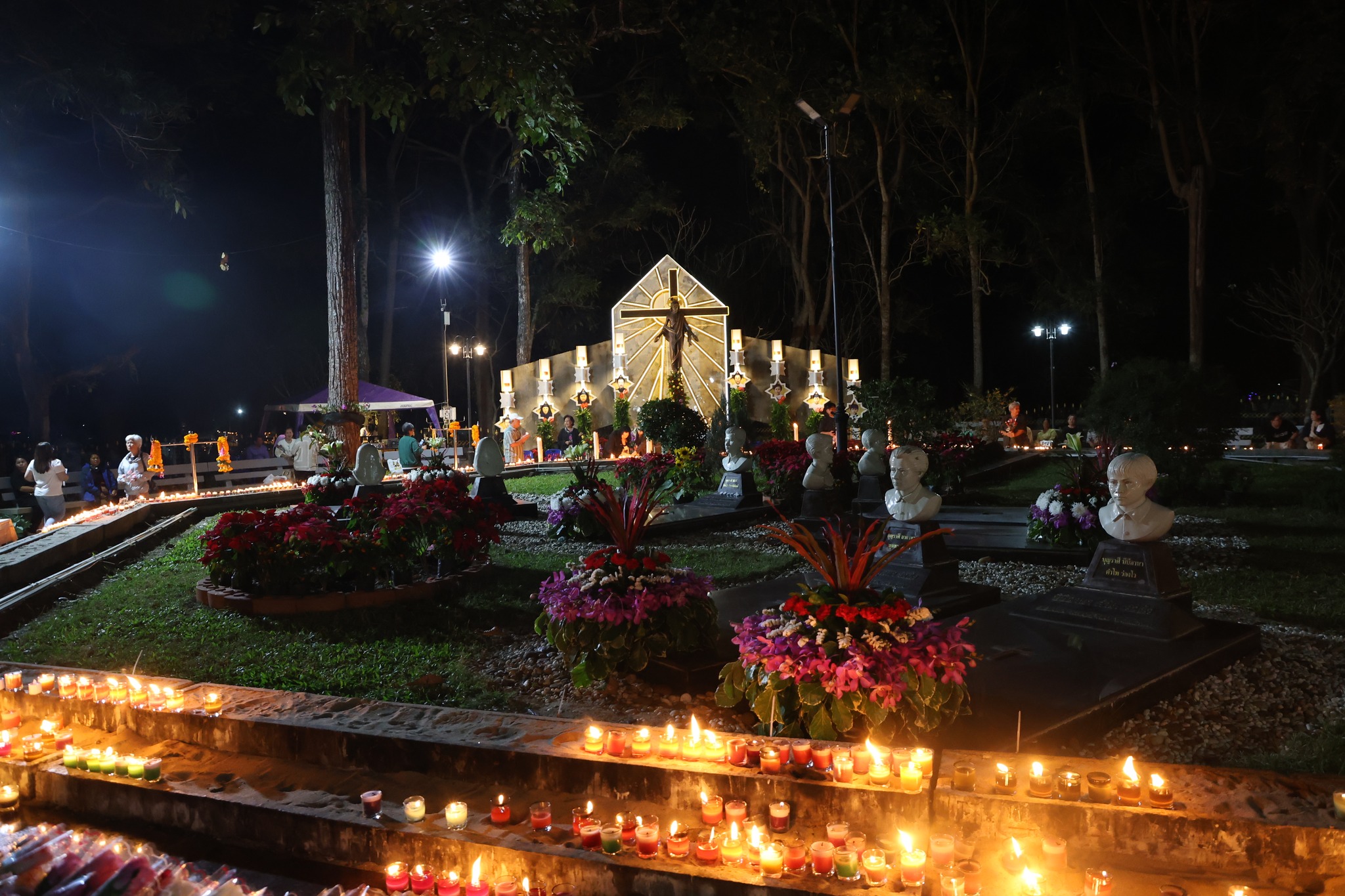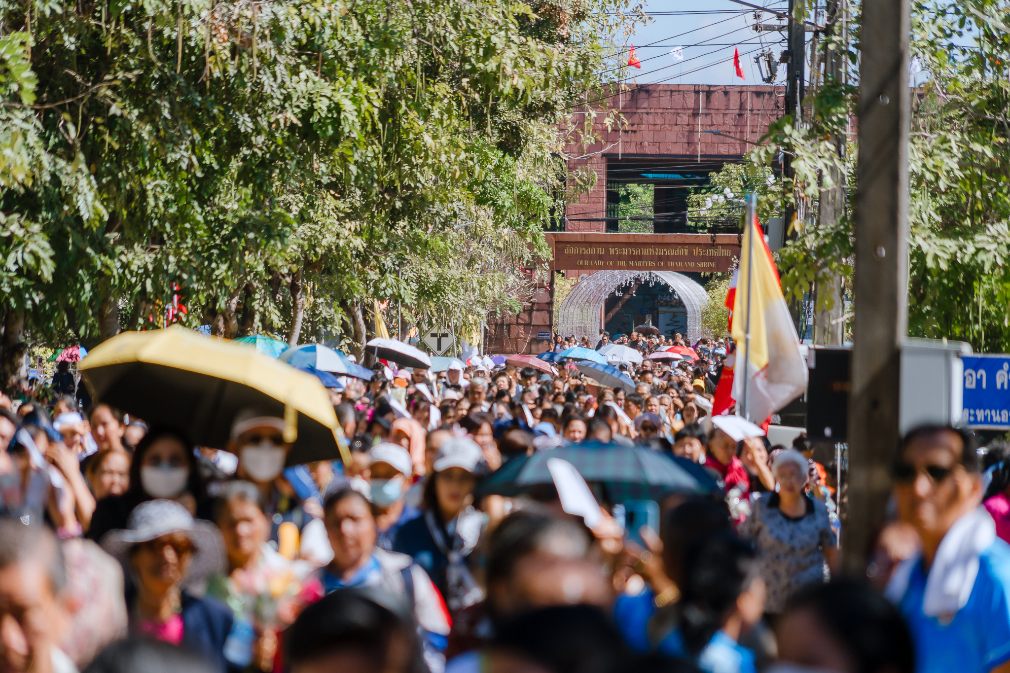 ก่อนเริ่มพิธี ได้มีการรำเทิดเกียรติบุญราศีทั้ง 8 องค์แห่งประเทศไทย โดยคุณครูทองบาง จันทรักษ์ และนางรำจากวัดต่าง ๆ รวม 385 คน ภายใต้การประสานงานของอาจารย์ดาวิทย์ พุทธิไสย พร้อมพิธีเปิดแพรป้ายและปล่อยลูกโป่งคำภาวนาสู่ท้องฟ้า จากนั้นมีการอ่านประกาศปิดปีศักดิ์สิทธิ์โดยคุณพ่อยอห์น อดิพงษ์ แสนสุริวงศ์ เลขาธิการอัครสังฆมณฑลท่าแร่–หนองแสง หลังพิธีบูชาขอบพระคุณ มีการแห่พระธาตุบุญราศีไปยังสุสานและอวยพรด้วยพระธาตุบุญราศี