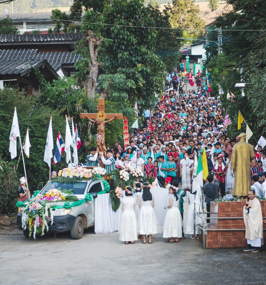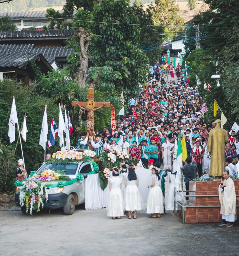 สัตบุรุษจากหลายชุมชน อาทิ บ้านป่าตึง บ้านตีนผา บ้านป่าบงเปียง บ้านแม่มิงค์ บ้านสบจอก บ้านแม่มุ และบ้านโป่งขนุน ต่างพร้อมใจกันมานมัสการพระธาตุด้วยหัวใจที่เต็มไปด้วยความศรัทธาและความเคารพ สะท้อนถึงสายสัมพันธ์แห่งความเชื่อที่ยังคงเหนียวแน่นในหมู่คริสตชนบนดอย